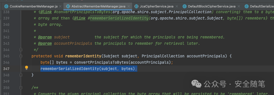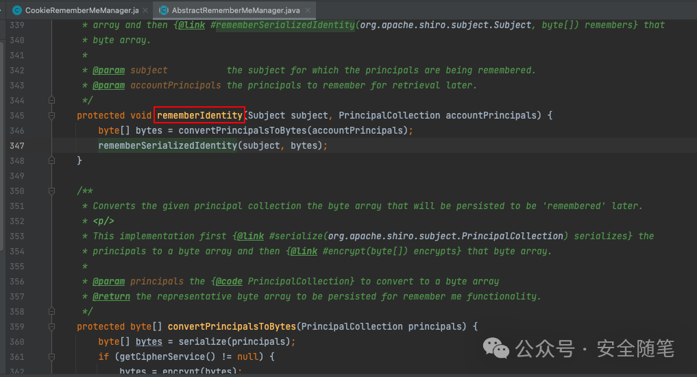 AbstractRememberMeManager.rememberIdentity方法中,进入rememberSerializedIdentity方法