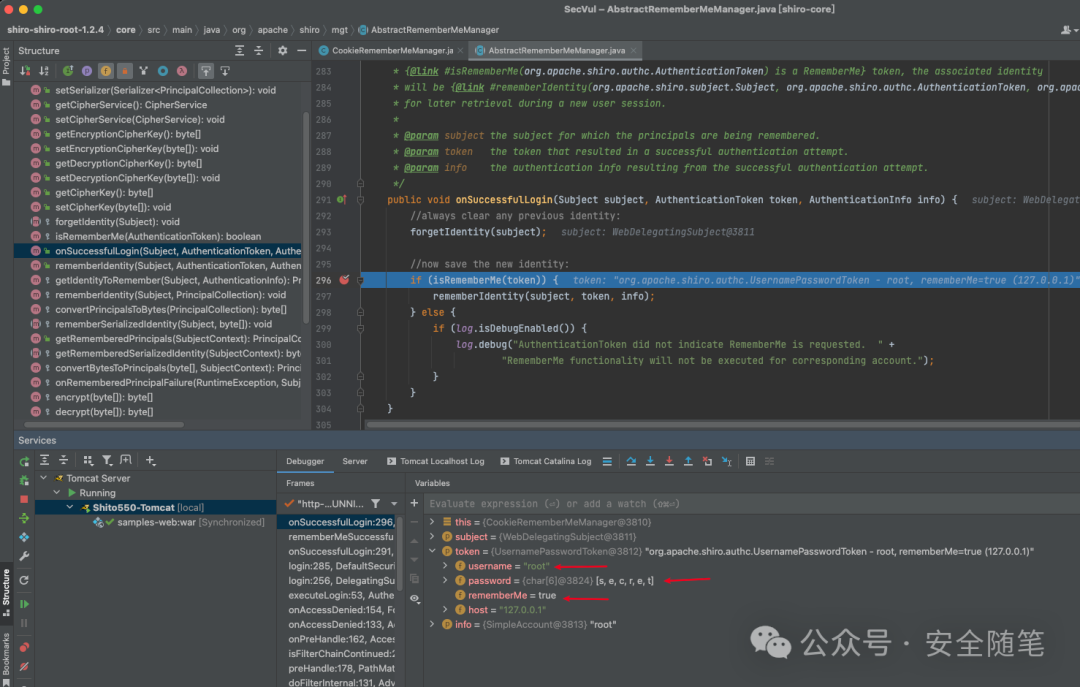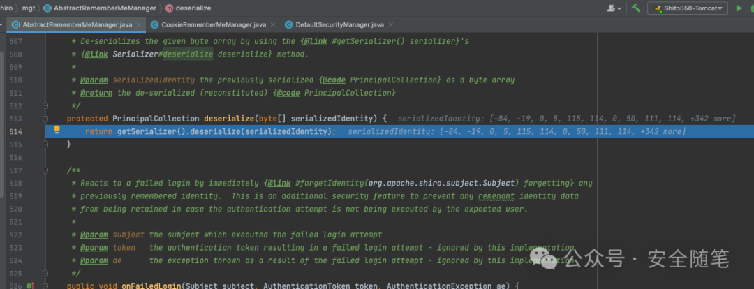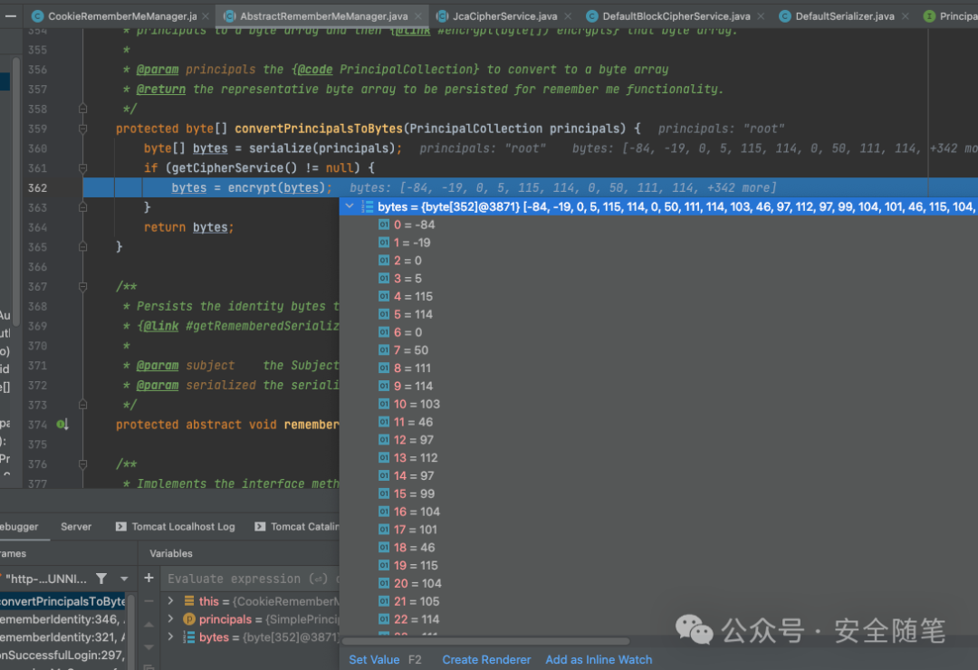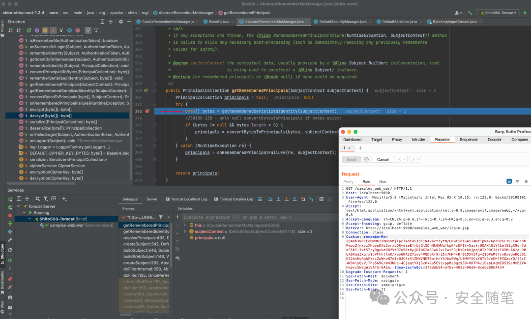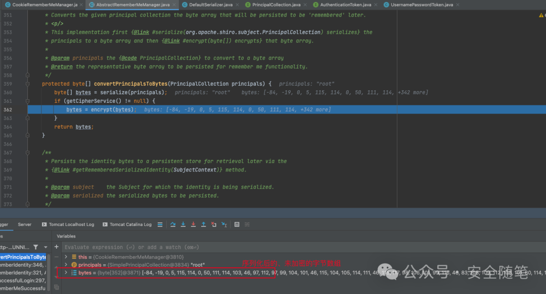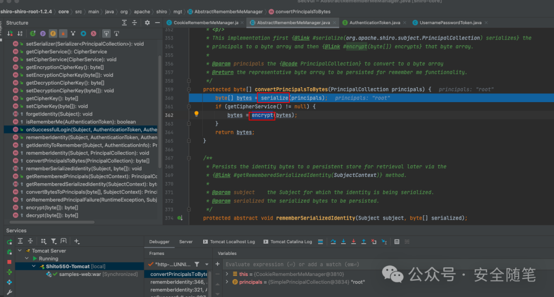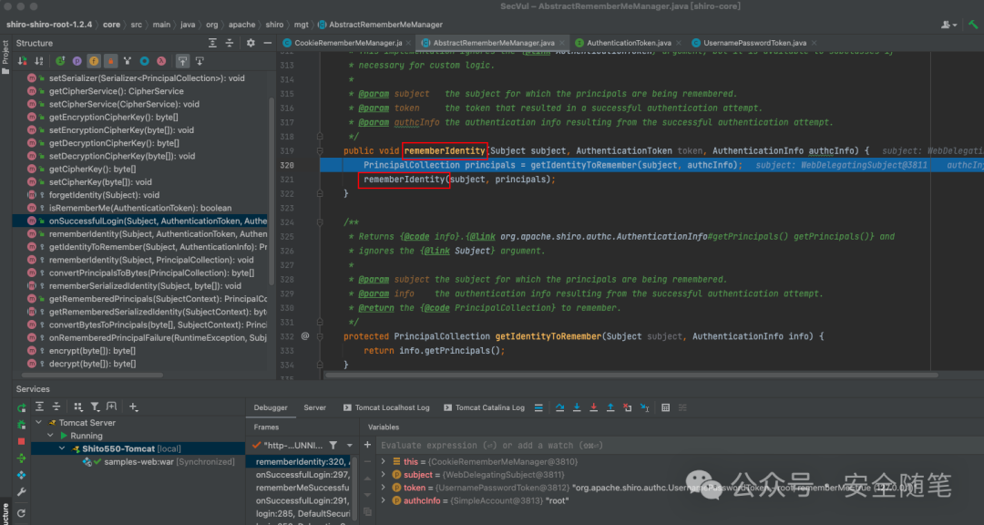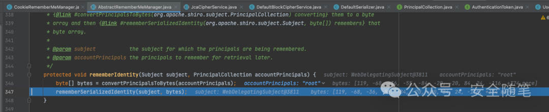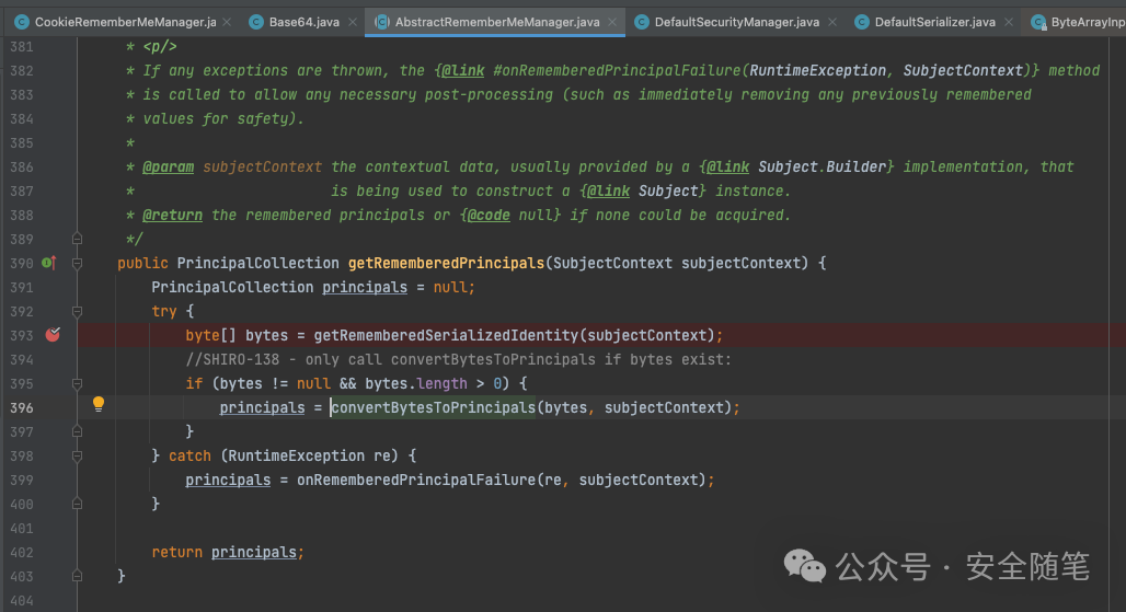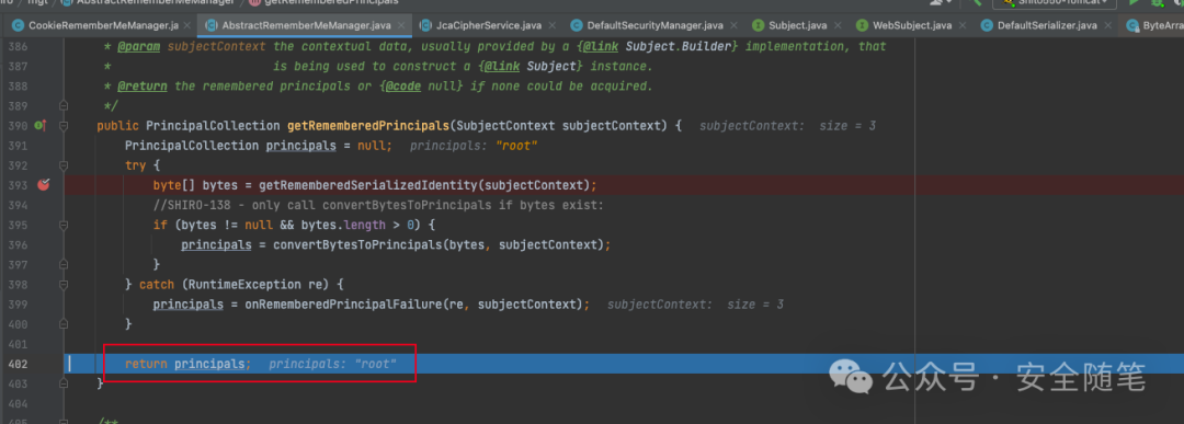 AbstractRememberMeManager.getRememberedPrincipals方法,随便打一个断点调试: