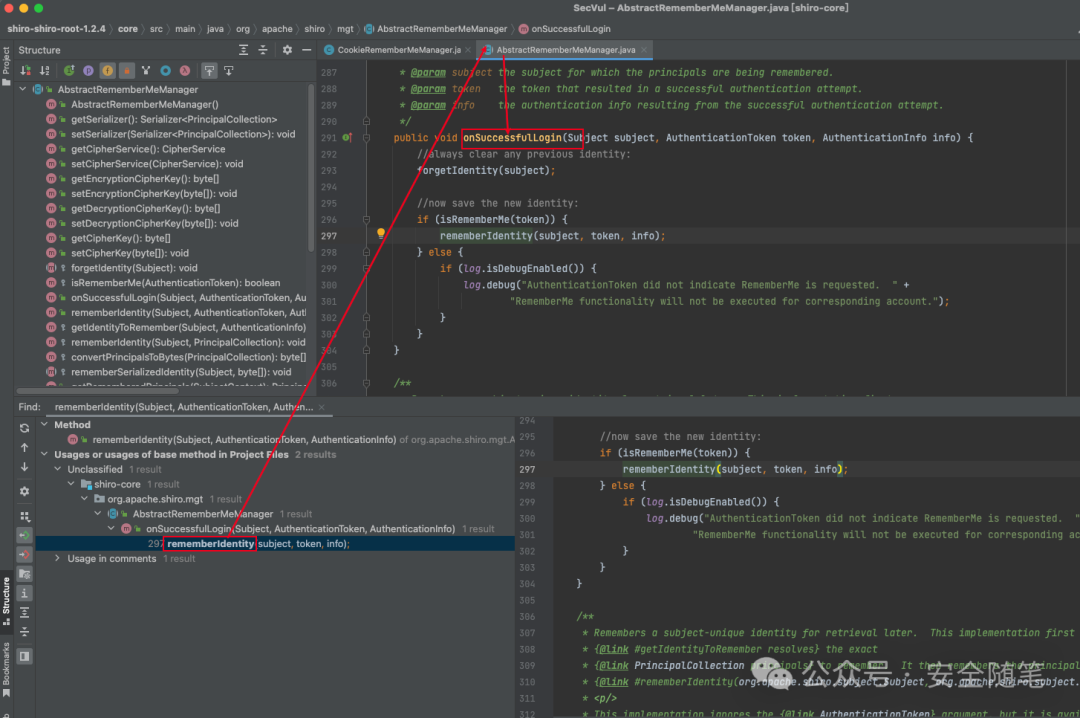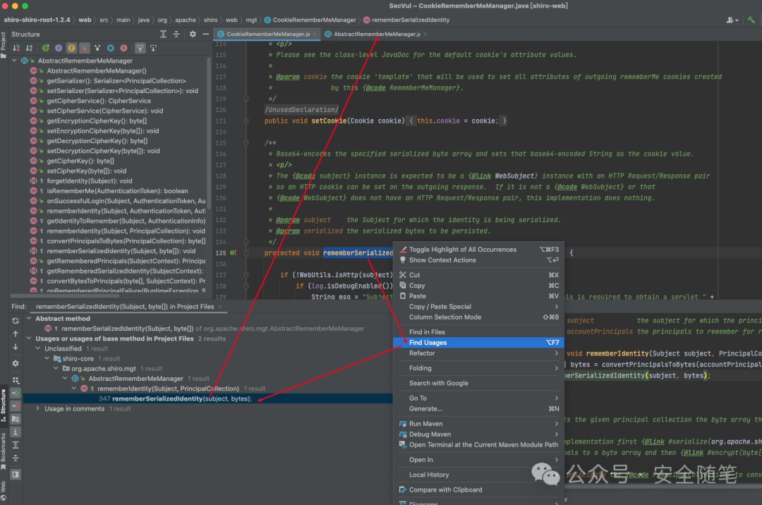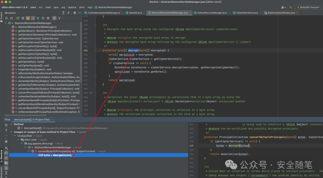 前面加密过程分析到AbstractRememberMeManager.encrypt,同样该类也有一个解密方法: