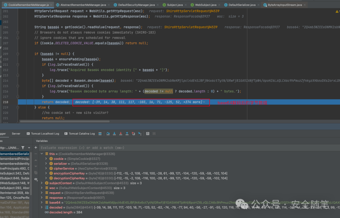 到这就分析完了rememberMe cookie值的序列化–>aes加密–>base64编码整个过程了。