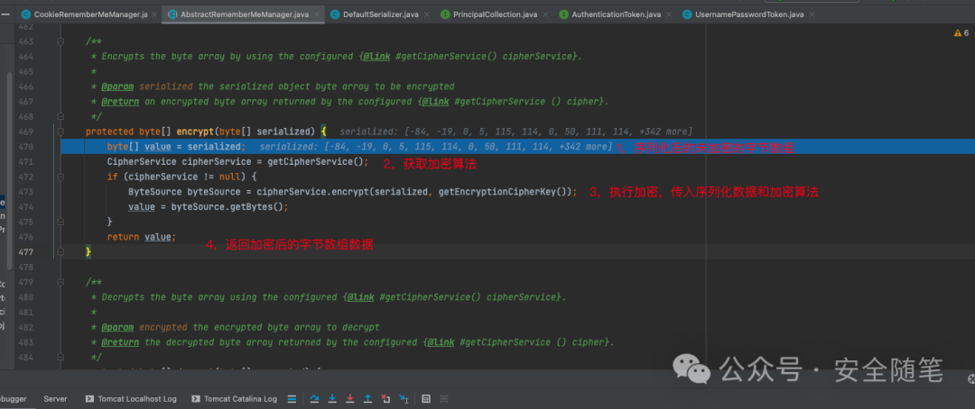 3)cipherService.encrypt(serialized, getEncryptionCipherKey())执行加密