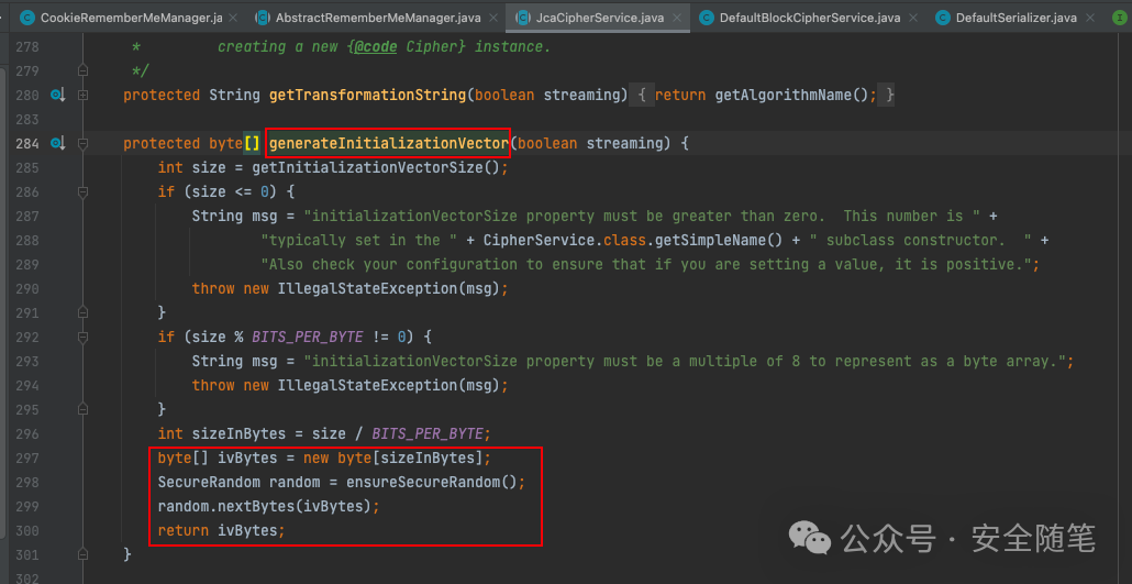 继续进入generateInitializationVector方法:猜测是获取AES加密的iv向量的,看看如何实现的:
