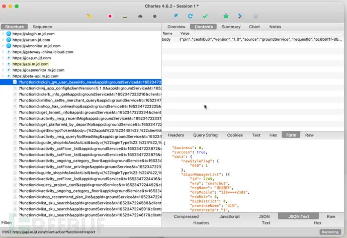 首先确定测试接口,京东万家 APP 的所有接口都需要登录才能访问,因此需要逐一验证。获取接口及参数信息,流程如下: