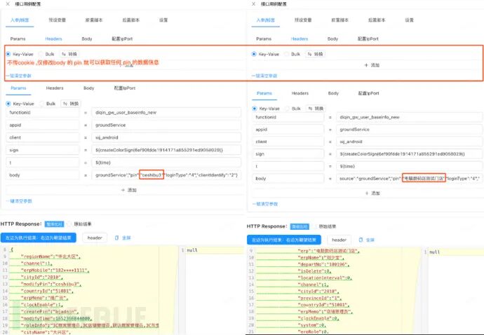 垂直越权测试:在万家 APP 业务中,店主的权限高于店员的权限,因此需要进行垂直越权测试来验证店主的信息是否存在泄漏风险。