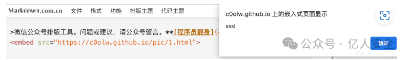 换了个 embed iframe 一下就出了,当然这个反射性没啥用,只是给各位平时做漏洞挖掘起到一点启发。
