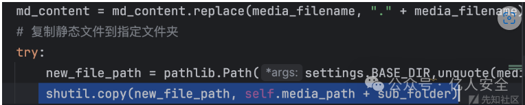 可以看到解析的路径是可以存在 ../ 路径穿越的,随后就使用 shutil.copy 对这个资源进行的复制操作.