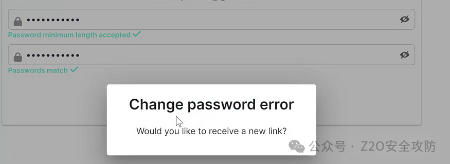 我立即输入了我在链接中使用的新密码,登录成功。那么到底发生了什么?即使密码重置链接显示此错误,密码实际上是在后台更改的。这只是前端的一个错误。