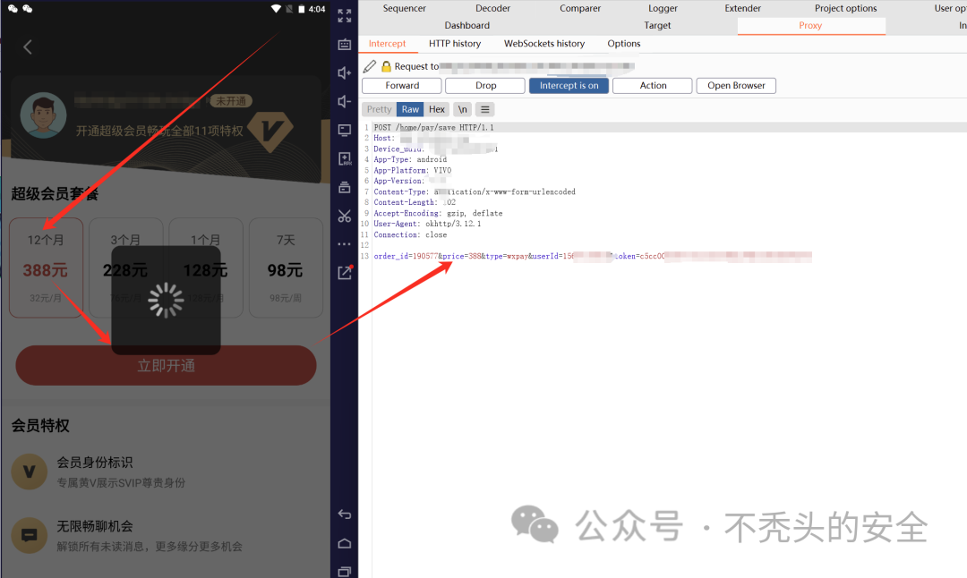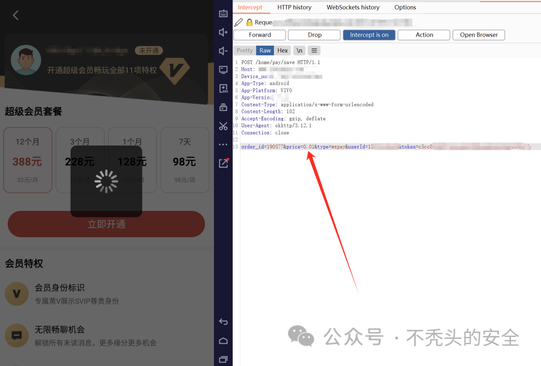 某交友APP存在逻辑缺陷,用户可以通过修改会员价格用一分钱购买价值388元的会员(玩的就是白嫖~)。