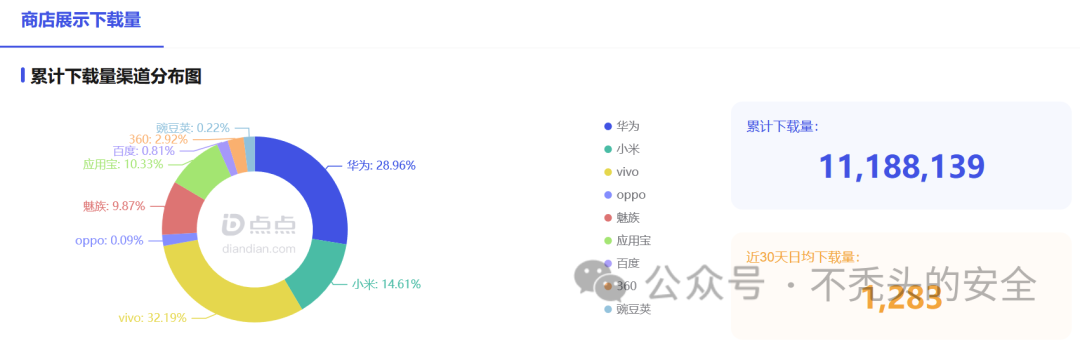 首先在点点数据看下app的下载量,一千多万次的下载量,实际使用用户应该还是挺多的。