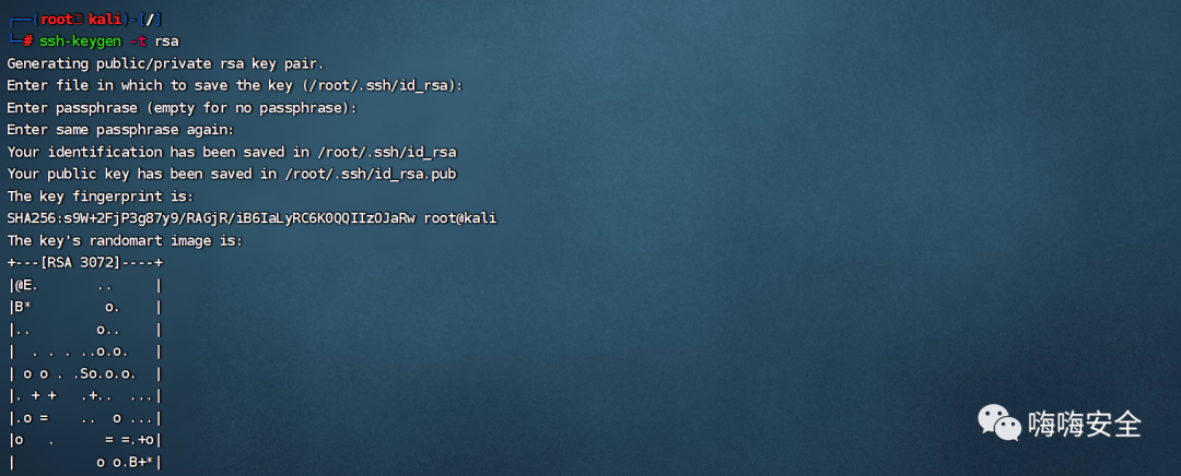 在攻击机中生成ssh公钥和私钥,密码设置为空