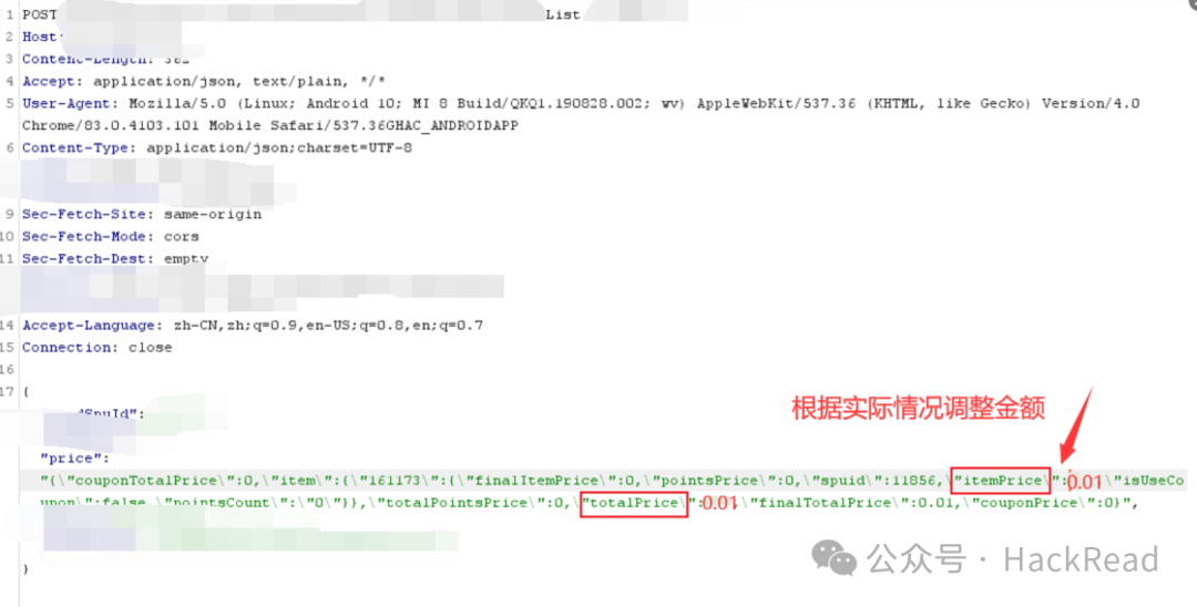常见于涉及优惠券的订单中。可以在提交订单的时候修改发包中优惠券的值尝试使用大额优惠券,或者按照原数据包中优惠券的构造参数手工添加几张优惠券,达到优惠券叠用的目的。有优惠券面值参数的也可以直接修改数据包中优惠券的面值。