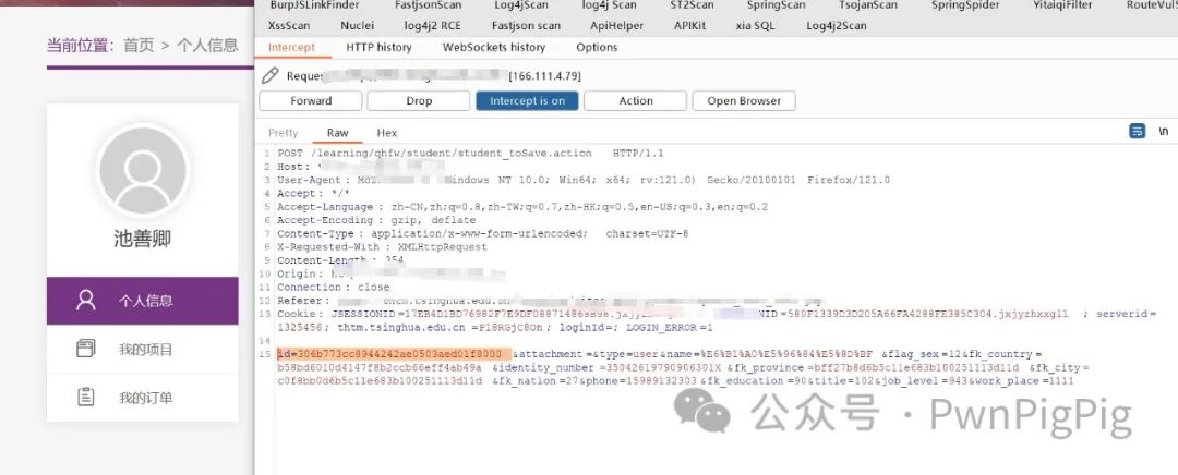 这里是我们的个人信息,编辑好后点击确认,Burp进行抓包