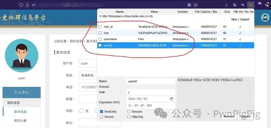 我这里使用的是火狐的Cookie插件,造成越权的原因在于