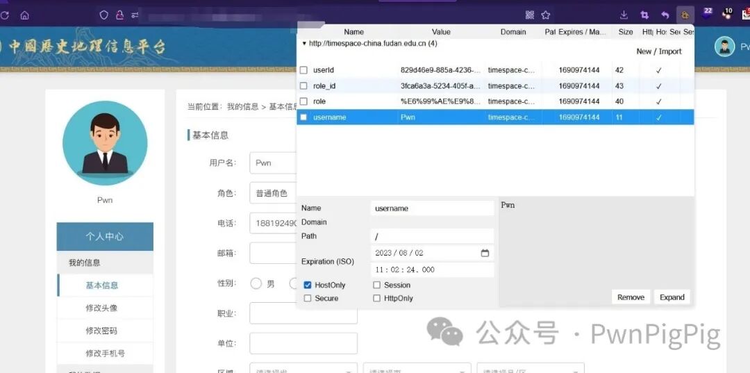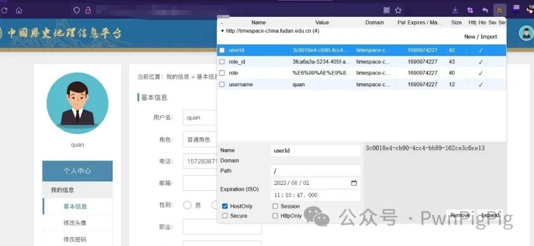 复旦地理信息平台越权分别注册两个用户,分别是quan和Pwn