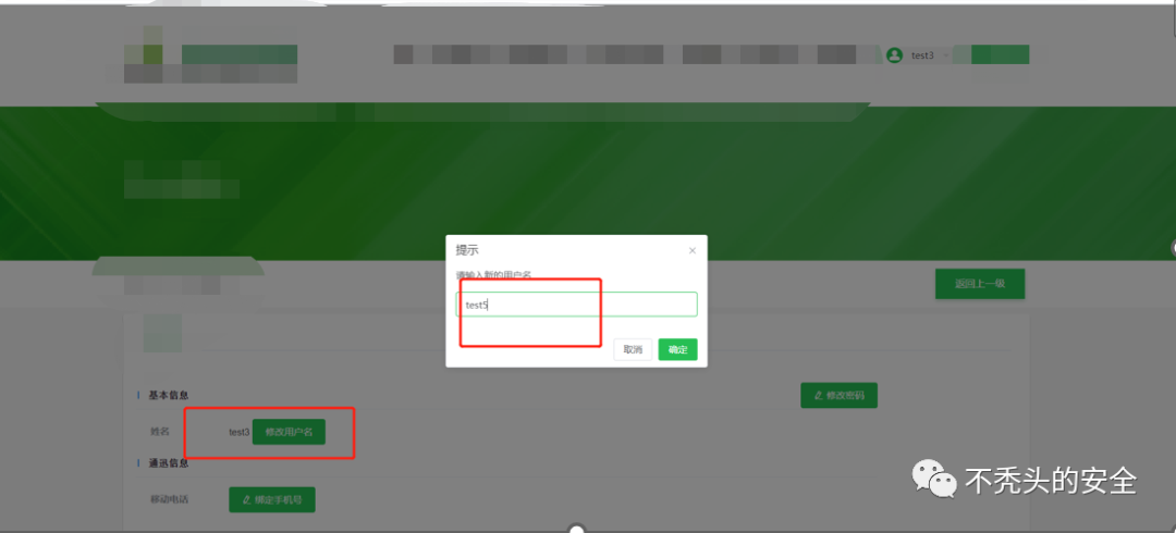 在test3个人信息修改账户用户名处随意输入为test5并抓包,