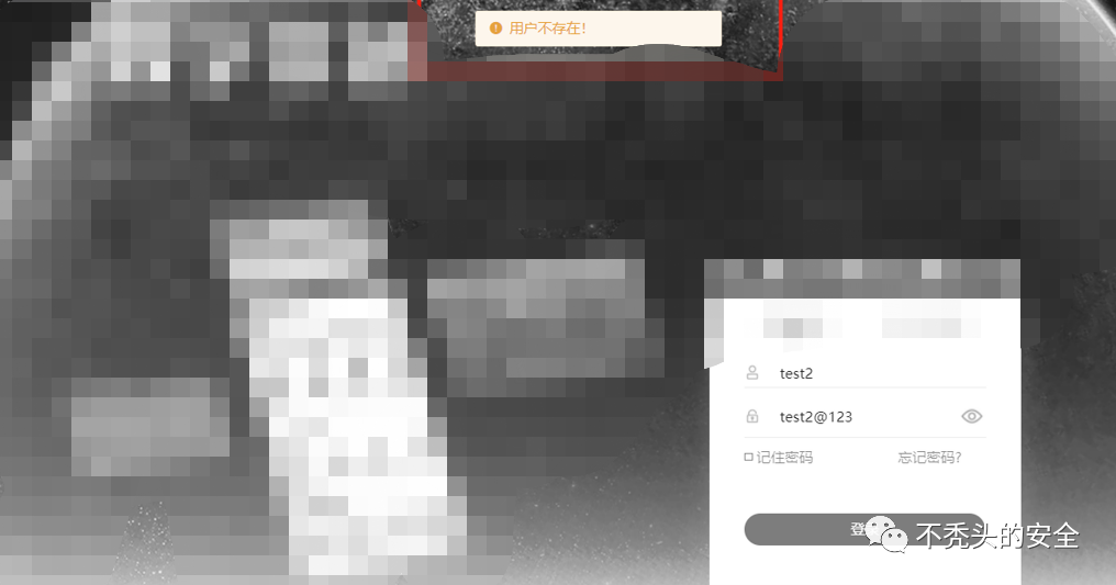 在登录处使用原来用户名test2登录发现用户名不存在,使用test5可以登录,