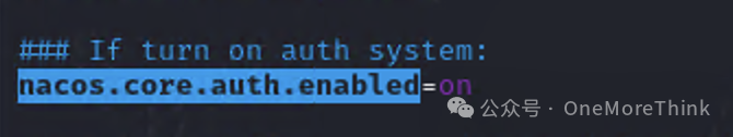 2、打开鉴权开关:将配置文件conf/application.properties中的 nacos.core.auth.enabled设置为on。