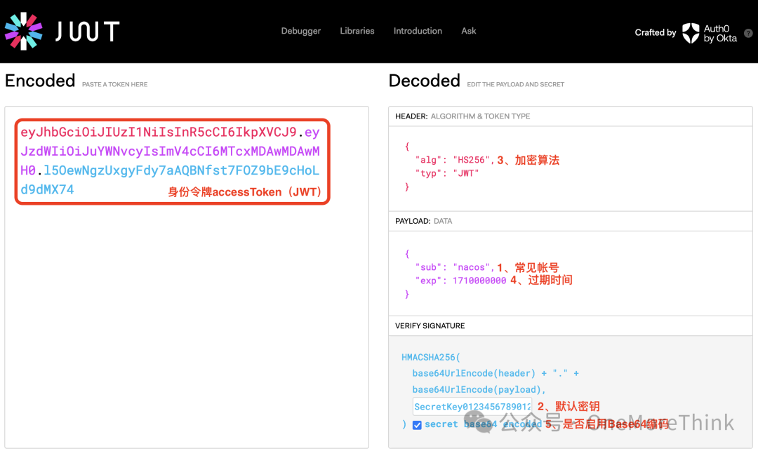 3、签名算法:HS256(HMAC SHA256,JWT默认)