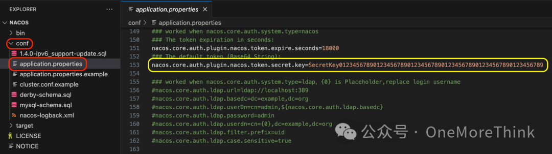 在 <=2.2.0、<=1.4.4的版本中,NACOS的配置文件conf/application.properties存在默认密钥nacos.core.auth.plugin.nacos.token.secret.key=SecretKey012345678901234567890123456789012345678901234567890123456789。