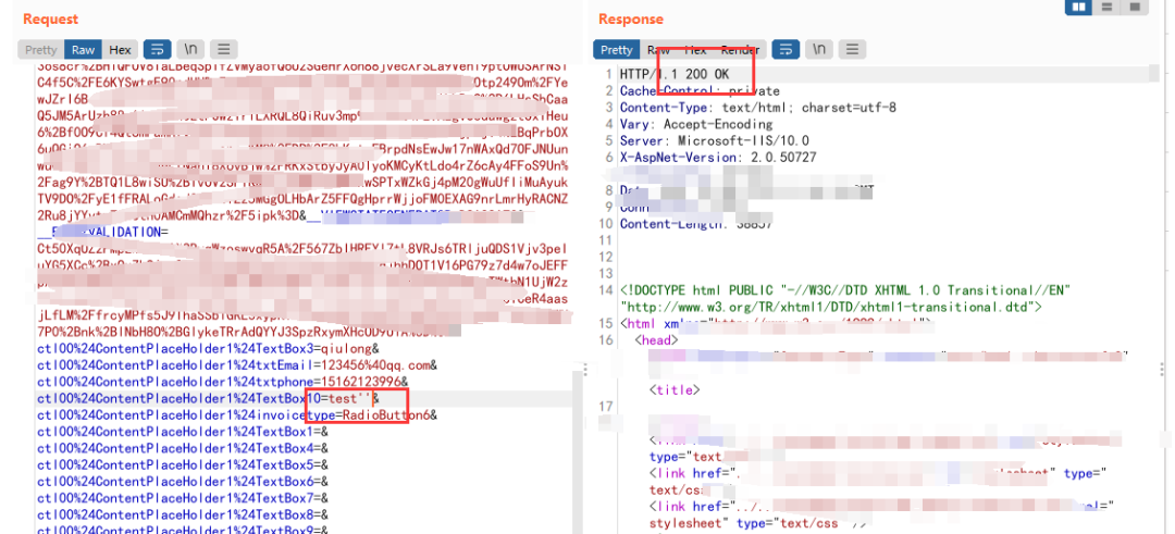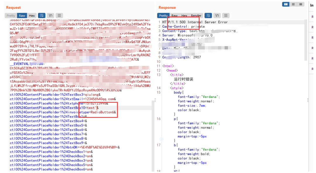这里抓包可以看到传参很多,有数据交互的地方首先就想到要测sql注入,所有这里就简单用单引号测试了一下,果然还真有报错。比如通讯地址:test后面拼接单双引号,发现存在SQL注入报错