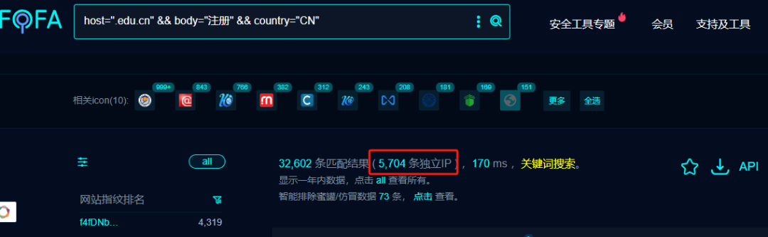 • Fofa:host=”.edu.cn” && body=”注册” && country=”CN”