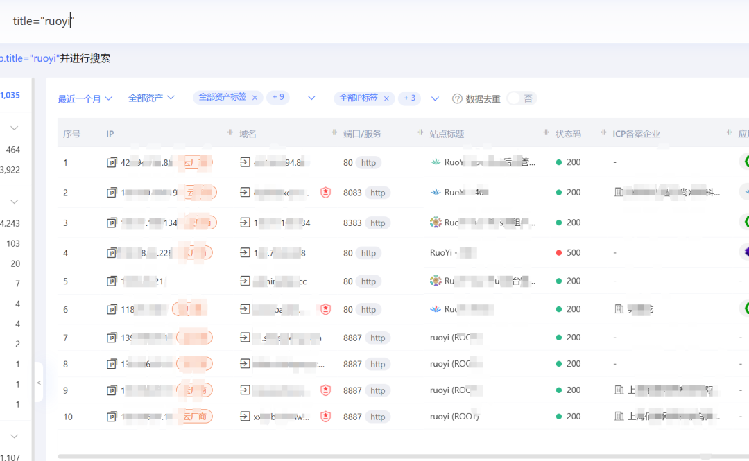 在这里我示范一种信息收集案例 以若依 为例 (鹰图)