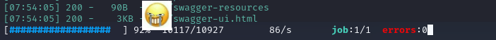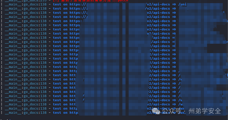 经过测试可以断定,是白名单策略,而且没找到文件包含的相关漏洞,暂时告一段落,然后接着对此域名进行打点,fuzz根目录没找到,根据抓包的小程序路径特征,对路径进行fuzz,看到有swagger-ui