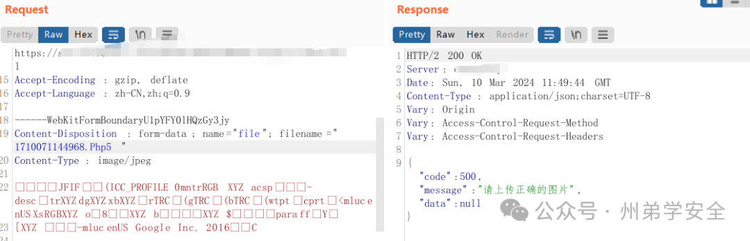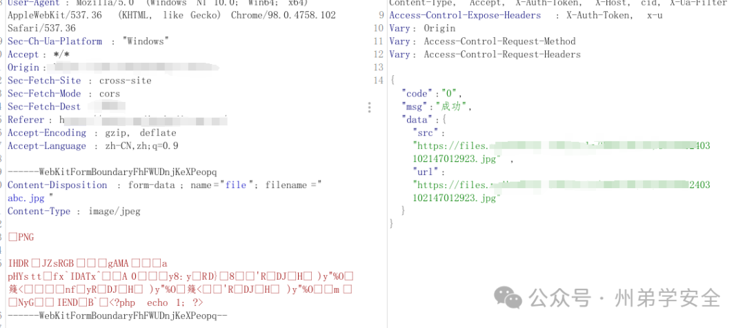 后来登录进去了小程序,越权是不行的,后端会在登录的时候生成一个token,这个是没有规律的,然后有个头像上传点,经过测试,前端设置了扩展名上传白名单,此处利用失败