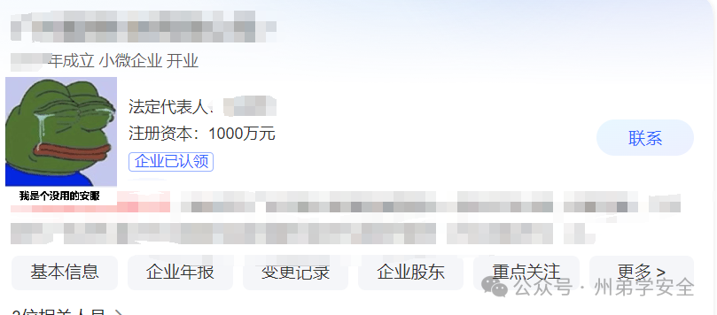 本次漏洞基本上以API接口延展的,中间经历了文件上传方面,奈何没有利用成功,后端限制严重,基本围绕逻辑漏洞、信息泄露,短信HZ等,先放一张相关企业的查询,由于权重低,注册资本低,交公益SRC了,总结最后写,希望各位观众老爷们看个开心就好