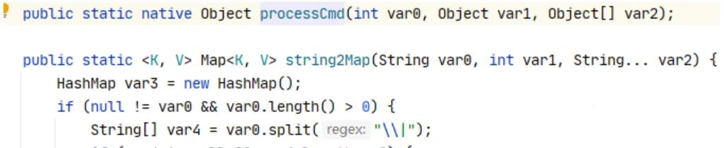 通过jni调用了C,实现还是在C里,找到System.loadLibrary(“xxx”) 并反汇编: