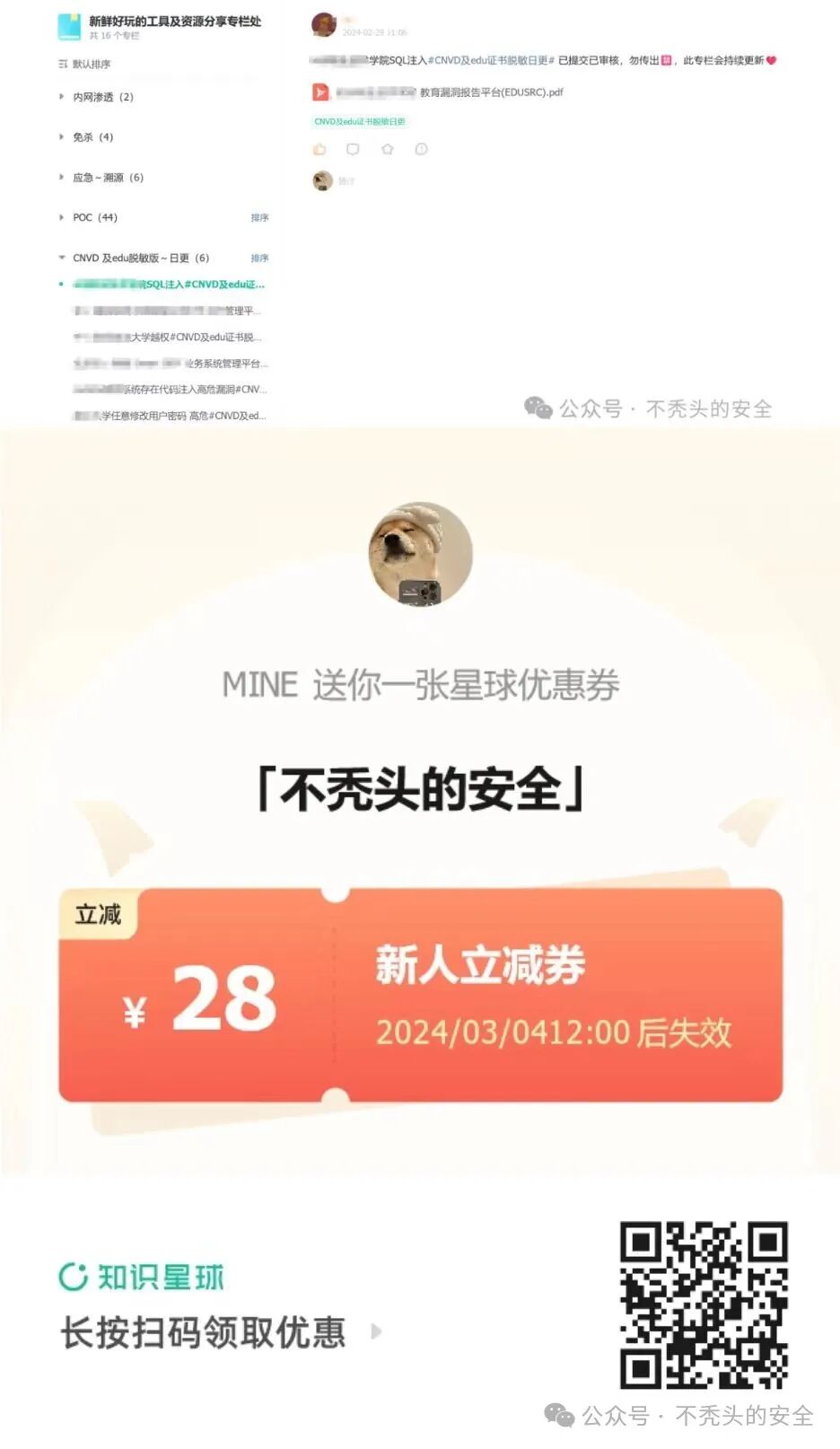 二、同时需要加知识星球的,目前还有2天优惠,过时间后恢复原价,报告类的日更(除周六日),后续会有qy级src报告更新