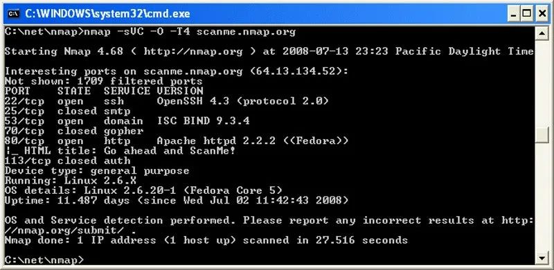 Nmap是一款非常流行的自动化安全测试工具。它可以在各种主流操作系统上运行,并快速扫描大型网络。它通常会检测以下信息:网络上有哪些主机可用,主机在运行什么服务,主机在运行哪些操作系统版本,使用哪种类型的数据包过滤器和防火墙,以及发动攻击之前需要的其他有用情报。此外,Nmap的说明文档也很全面,还有针对命令行和GUI(图形化操作界面)版本的众多教程,很容易上手。