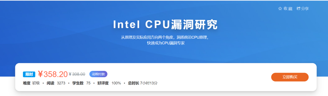 为此, 看雪推出【Intel CPU漏洞研究】课程!