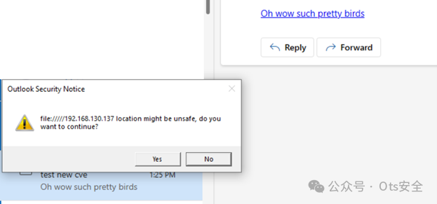 研究人员发现了一个有趣的现象:当在电子邮件中发送 file:// 路径链接时,新 Outlook 会自动将其附加到 URL 中。通过 SafeLinks,该漏洞可能导致用户的 NTLM 哈希泄露。