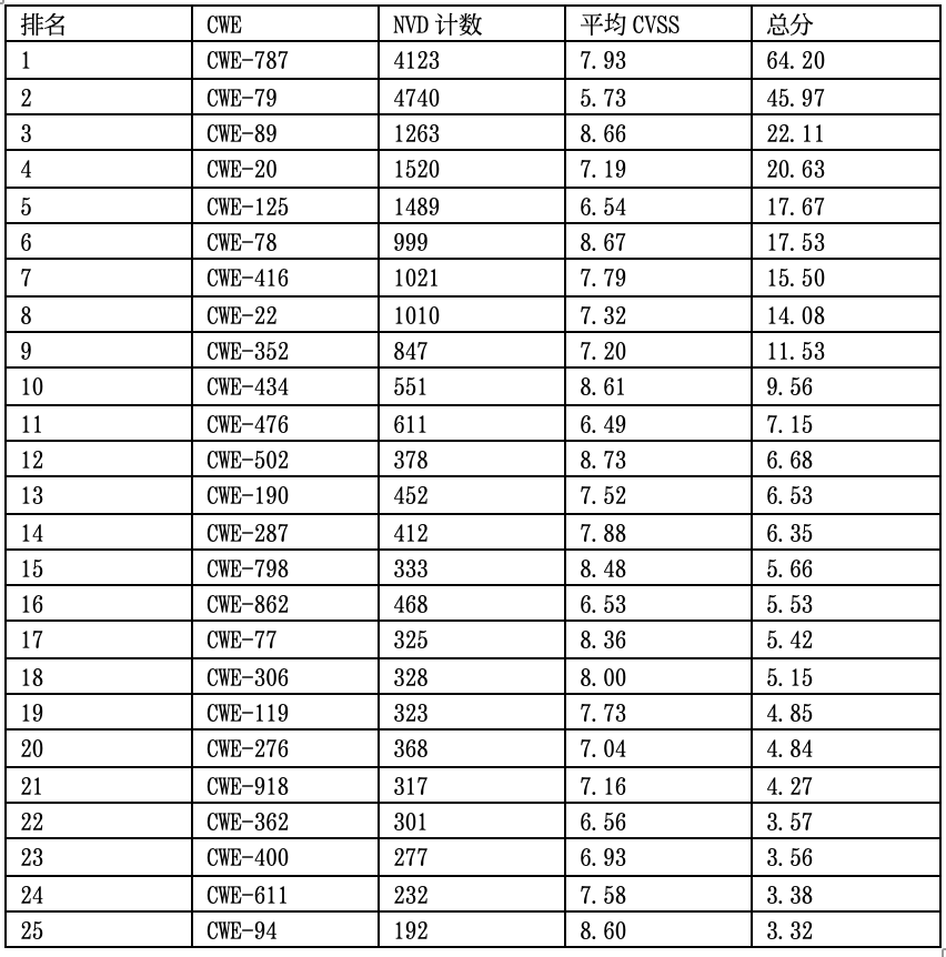 - CWE Top 25评分指标
