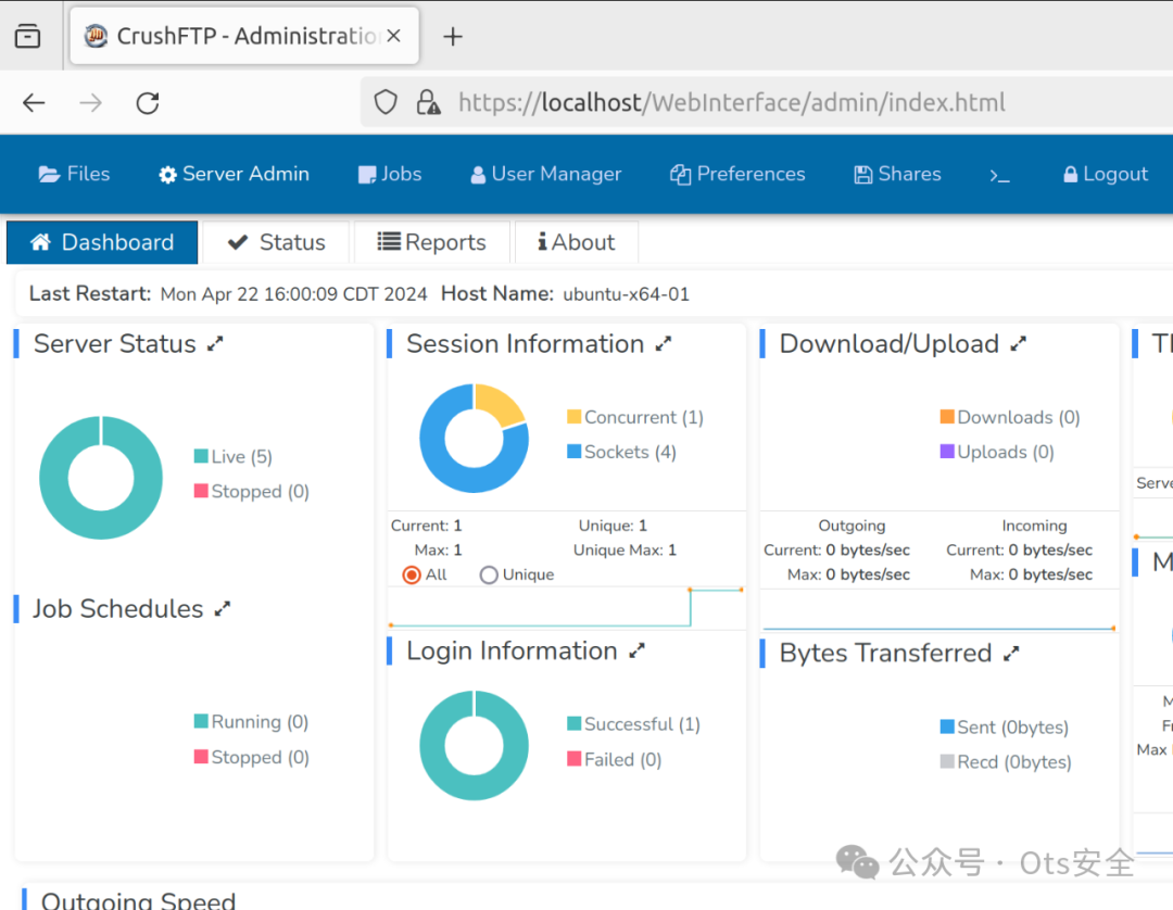 利用该漏洞的恶意请求似乎可以使用任何 HTTPS 方法,并且可以通过请求正文参数传递有效负载。 CrushFTP.log