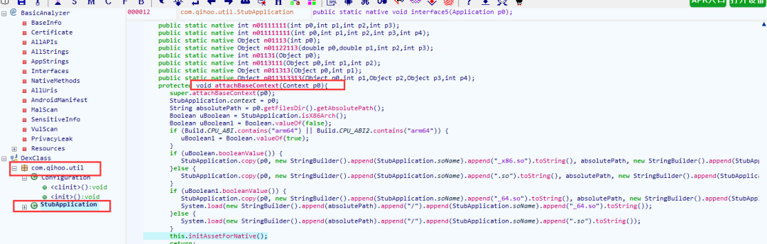 ④ 调用声明Application的attachBaseContext()对源程序进行动态加载或解密。