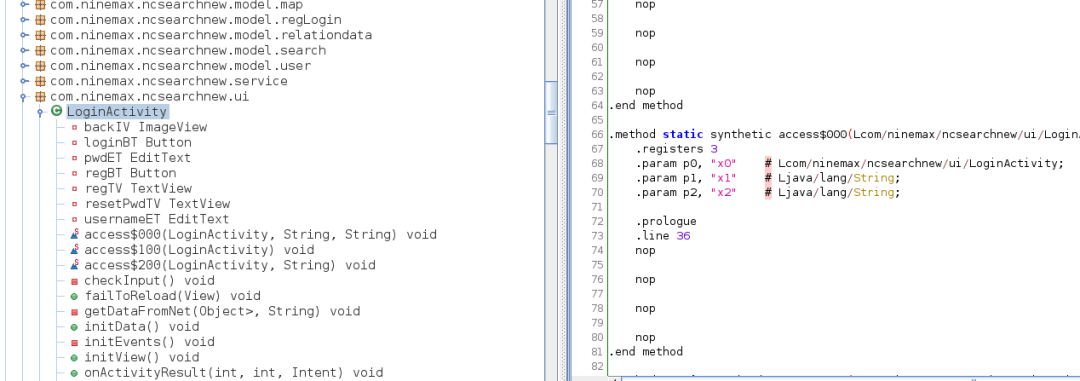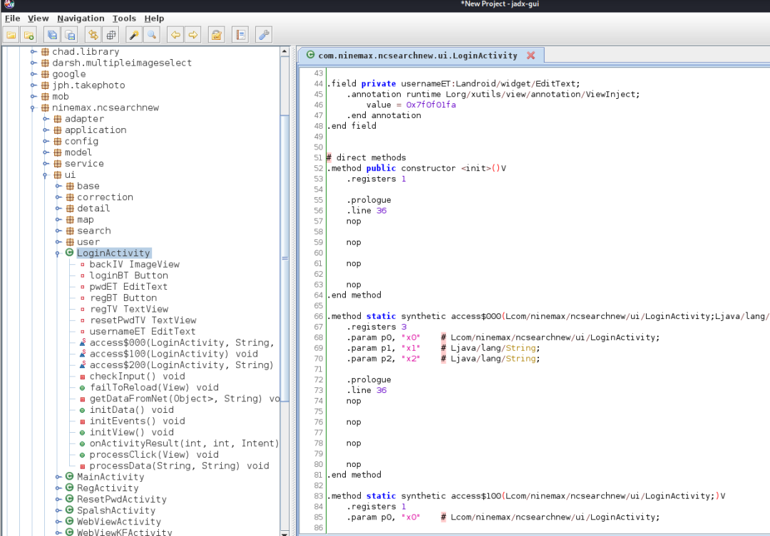 1、找到加固apk的任一class,一般选择主Application或Activity