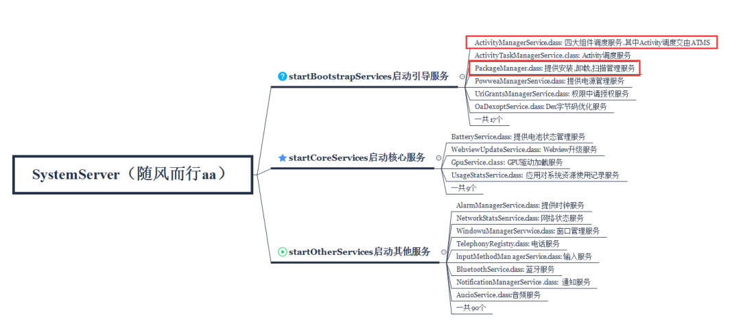 我们就了解了最后Zygote进程fork出第一个进程:SystemServer进程,SystemServer主要完成了以下工作: