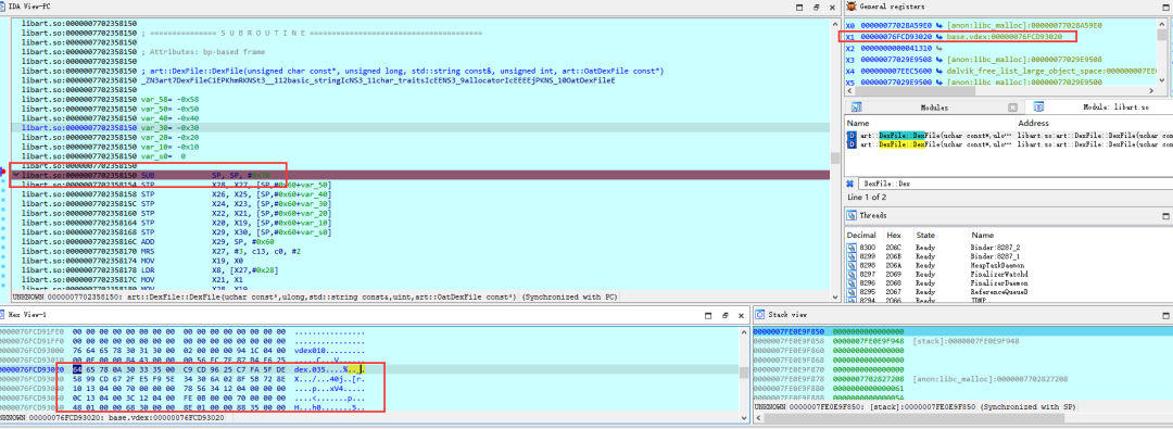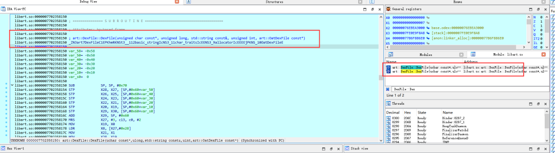 然后我们打开libart.so,并定位到DexFile::DexFile。
