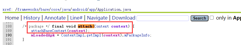这里我们就进一步调用了attachBaseContext()方法。