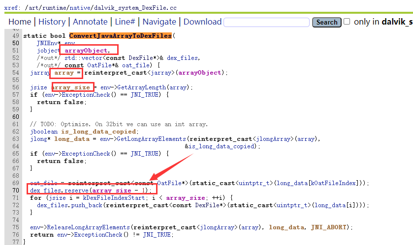 #2、5.0是一个long值,该值指向native层std::vector<const DexFile*>* 指针,注意这里有多个dex,你需要找到你要的