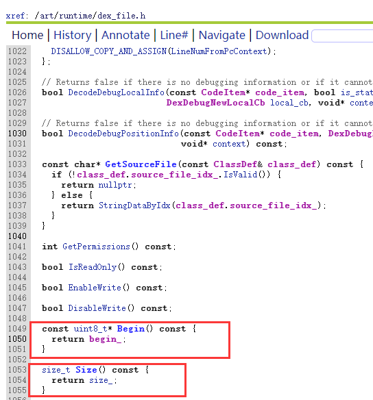 auto fp, begin, end, dexbyte;