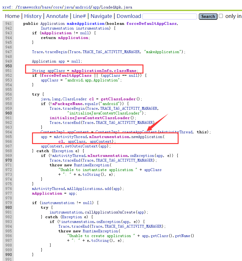 ③ 进入APP自身组件,解析AndroidManifest.xml,然后查找Application代理。