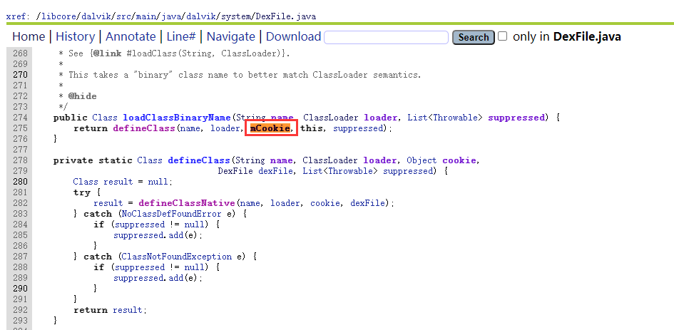 #1、4.4以下好像,mCookie对应的是一个int值,该值是指向native层内存中的dexfile的指针