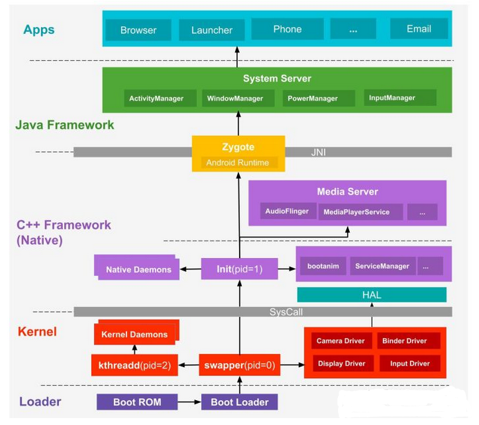 我们要彻底的了解App加壳原理,首先我们从了解App的启动流程出发,先于App启动之前,Android系统是启动最早,下面我们来详细查看一下Android系统的启动过程: