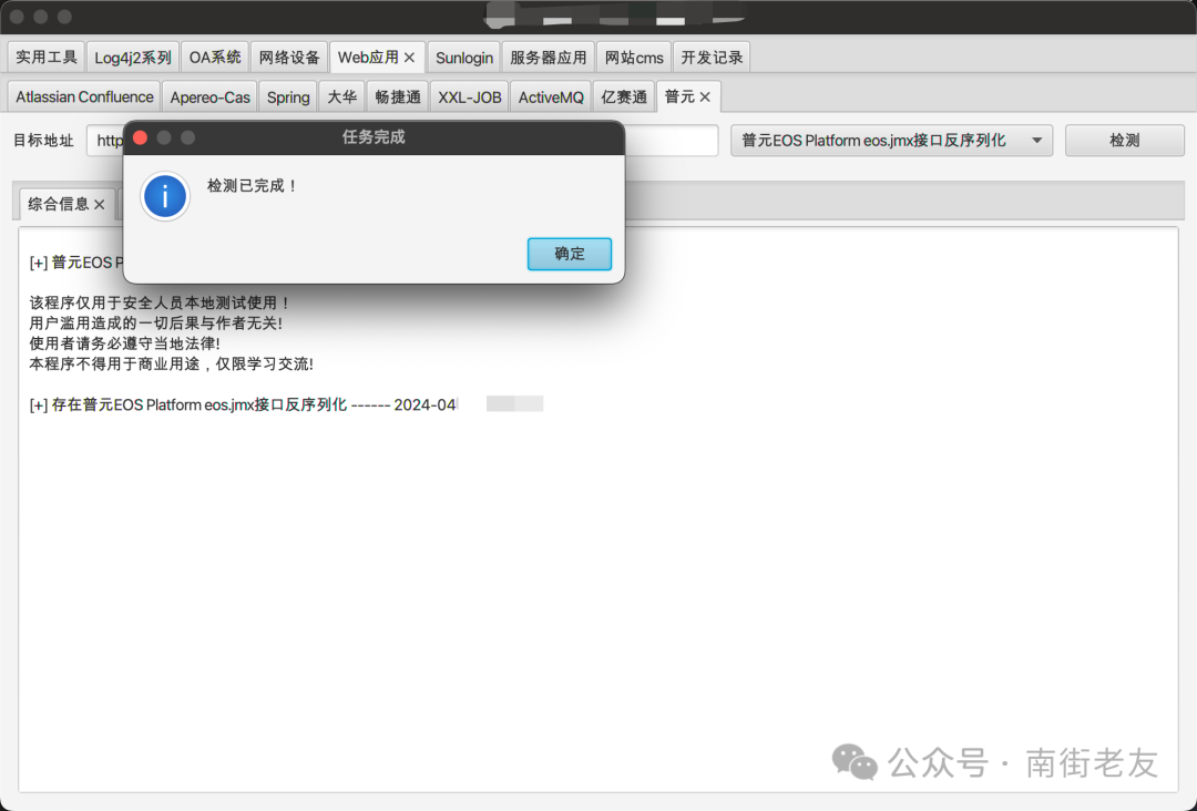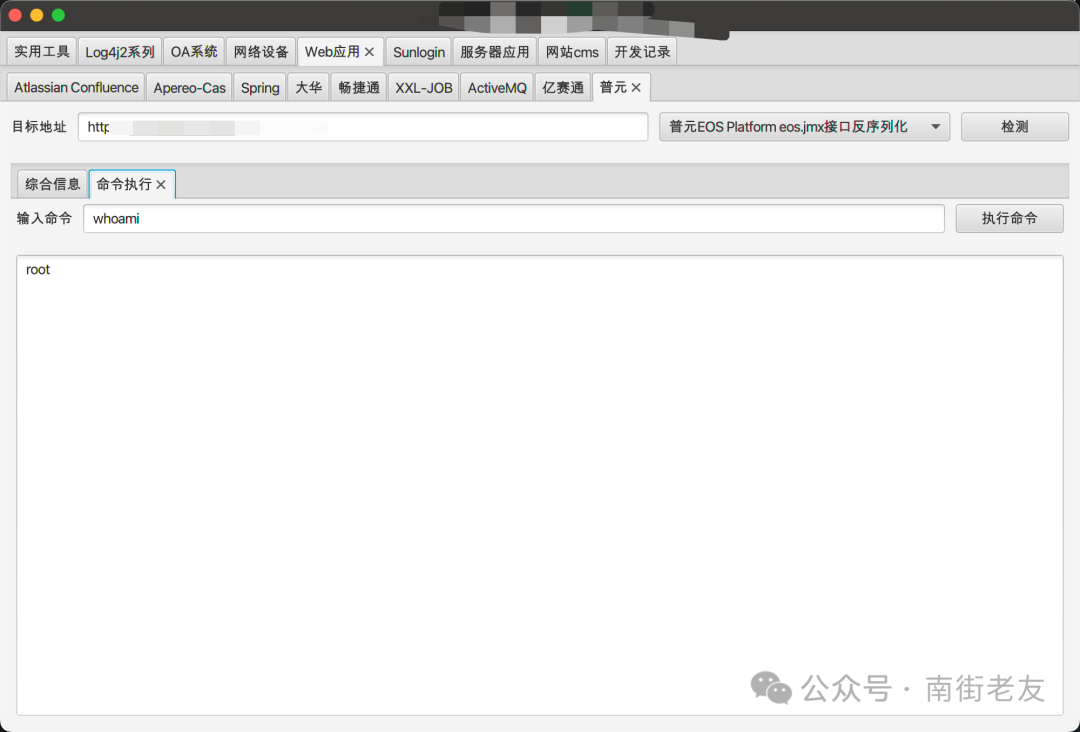 普元EOS某接口开启了JMX over HTTP功能,且未对反序列化数据进行充分的安全检查和限制。