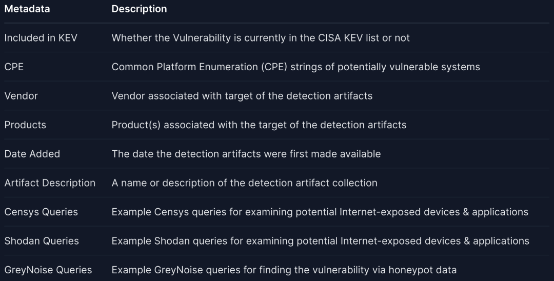 除此之外,VulnCheck 漏洞利用和漏洞情报还包括其他来源通常无法提供的独特字段,例如[8]: