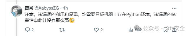 这里就有一个重要,就是利用难度的问题,曾哥也评论了相关需要Python环境支撑,才能RCE!